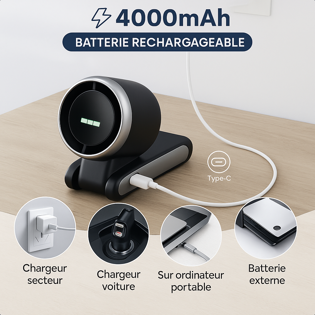 Ce n'est pas juste un ventilateur, c'est votre bouton 'off' pour la chaleur. Obtenez une bouffée d'air frais puissante et instantanée dès que vous en avez besoin. Dites adieu aux coups de chaud inattendus et profitez de l'instant.
